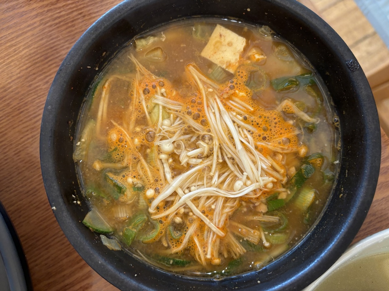 그리고 마지막으로 된장찌개랑 밥이 나와요. 사실 보쌈까지만 먹어도 이미 배가 불러요. 그래도 한국인은 밥심이죠? 밥까지 꼭 먹고 나옵니다.