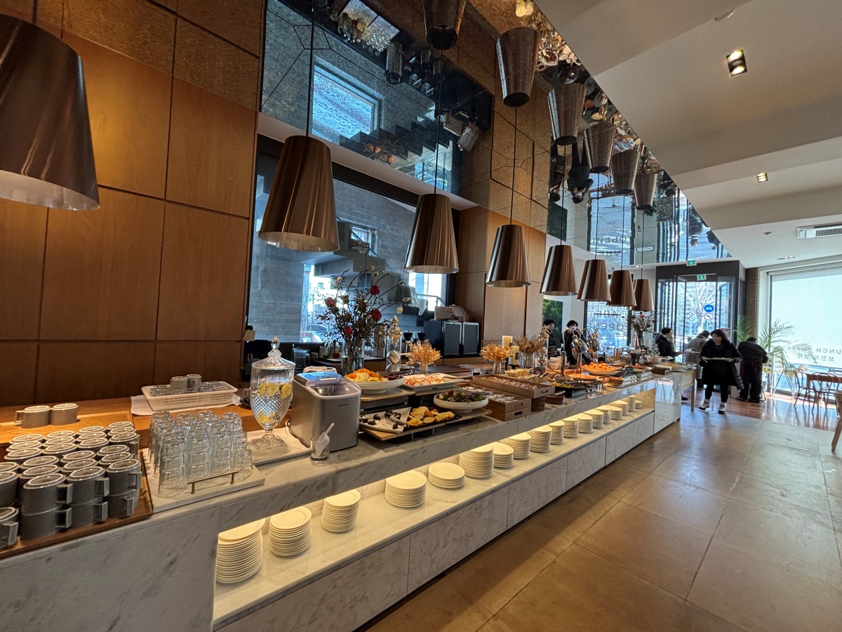 까사분도 브런치 뷔페는 메뉴가 많지 않지만 전부 맛있었어요. 보통 뷔페 가면 종류는 다양하지만 맛없는 음식들이 몇 가지 있는데, 여기는 다 평균 이상의 맛이에요. 아쉬운 점은 내부 공간이 넓지 않아서 음식 제공 테이블과 식사 테이블 간격이 너무 가까워요. 브런치 뷔페라 저는 좀 편안하게, 느긋하게 얘기하면서 먹고 싶었는데, 1시간 30분이라는 시간이 짧기도 하고 좌석 간격이 넓지 않아서 여유로운 식사는 힘들었어요.
