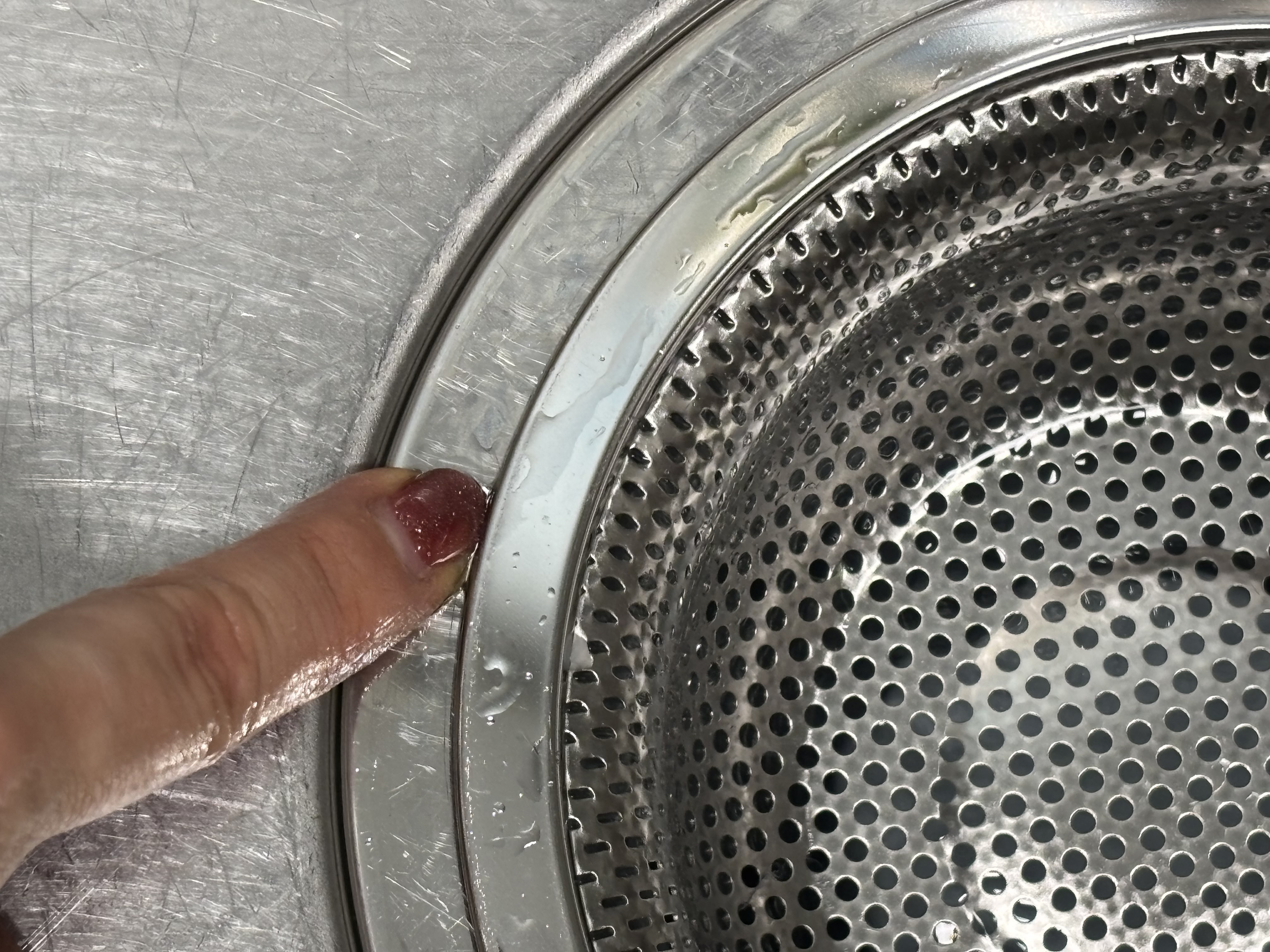 배수구 망을 위에 얹는 형태라 손가락 가르킨 곳에 틈이 생겨요. 집마다 배수 구멍과 높이가 조금 다르겠지만, 저희 집은 틈이 꽤 생기더라구요. 그래서 작은 음식물들은 저기에 끼여요. 밥알이나 고춧가루 같은 것 들이요. 그래서 스텐 거름망은 너무 추천하지만 거름망을 위에 올리는 형태가 아닌 안에 끼워넣는 방식의 거름망을 구매해서 사용하시길 추천드려요. 저는 일단 구매했으니 쓰다가 너무 불편하면 바꾸려고 합니다.