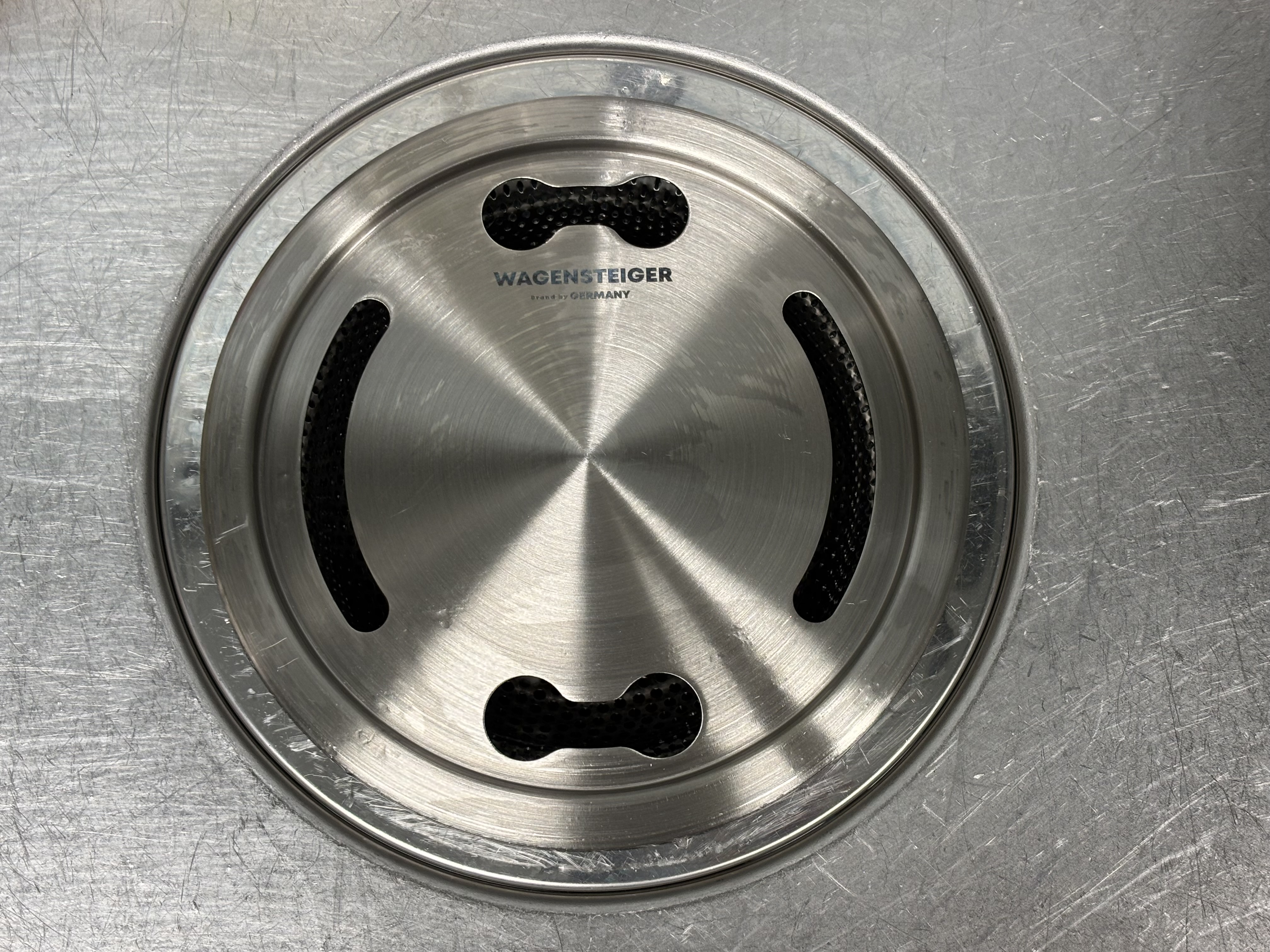 바겐슈타이어 싱크대 스텐 거름망과 커버를 장착한 사진입니다. 플라스틱 커버 보다가 스텐 커버를 보니 훨씬 깔끔하게 보이네요. 싱크대가 더 깨끗해진 느낌이예요. 그리고 커버에 있는 배수 구멍은 라운드 마감으로 더 안정감 있어보이네요. 위 아래로 동그랗게 되어 있는 부분에 손가락을 넣어 커버 탈착에 용이하도록 설계했다고 하네요.
